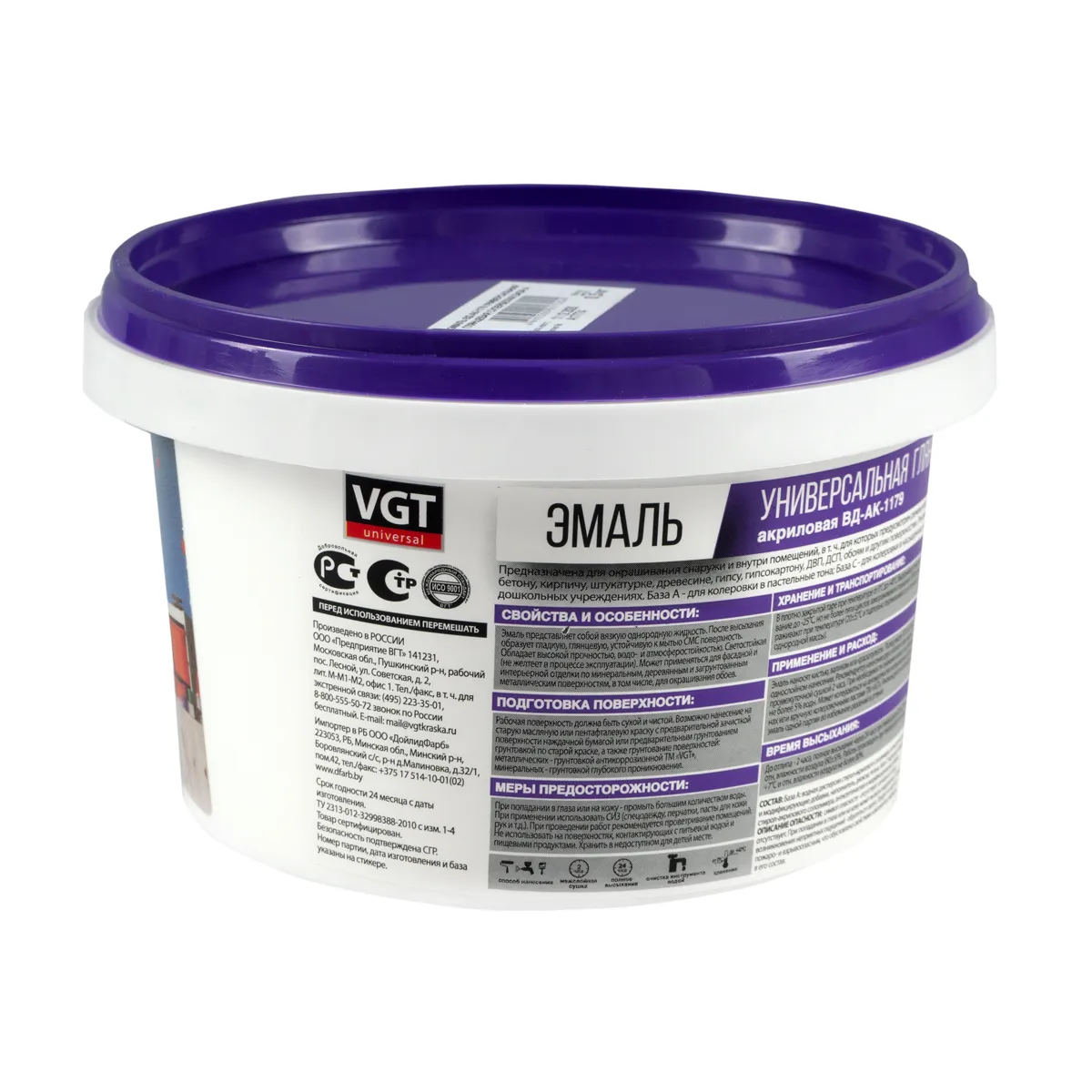 Эмаль вд-ак-1179 универсал. глянц. база а супербелая 0,5 кг (1/6) "Вгт"