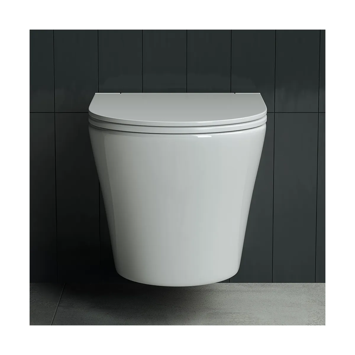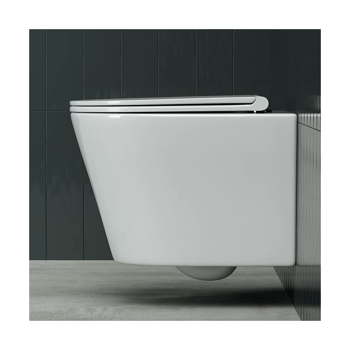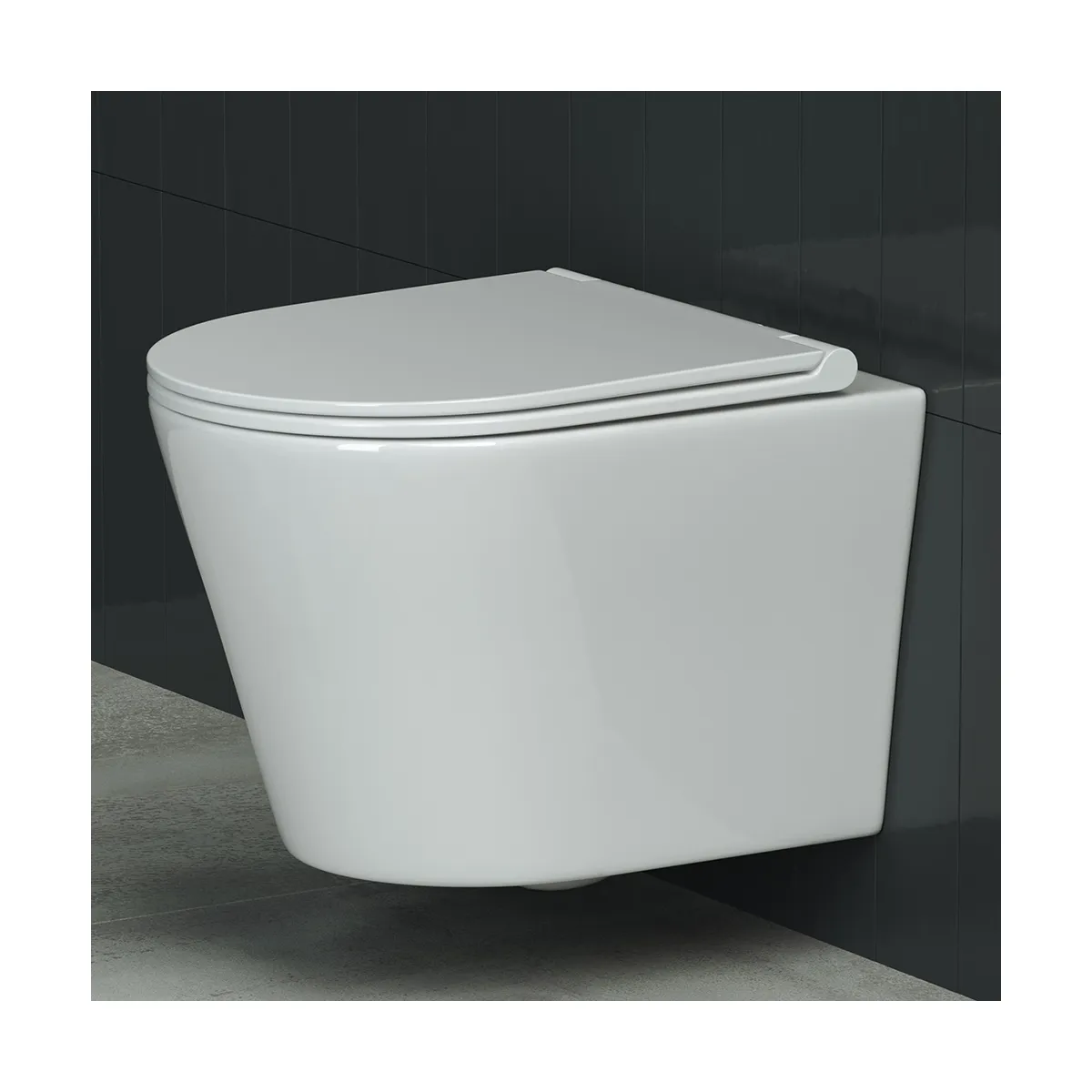Подвесной унитаз Rimless, глубокий смыв, с крепежом для полностью скрытого монтажа, ультра тонким с сидением и крышкой с функцией плавного закрытия, дюропласт.