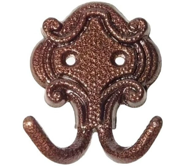 Крючок двойной медный КМ-4 - практичное решение для надежного крепления различных предметов. Изготовлен из меди с античным цветом отделки, что придает изделию элегантный классический вид. Материал отличается высокой прочностью и стойкостью к коррозии. Конструкция крючка включает два рожка, что увеличивает надежность фиксации по сравнению с одинарными аналогами. Форма рожков изогнутая, с заостренными концами для беспрепятственного прокалывания материала.