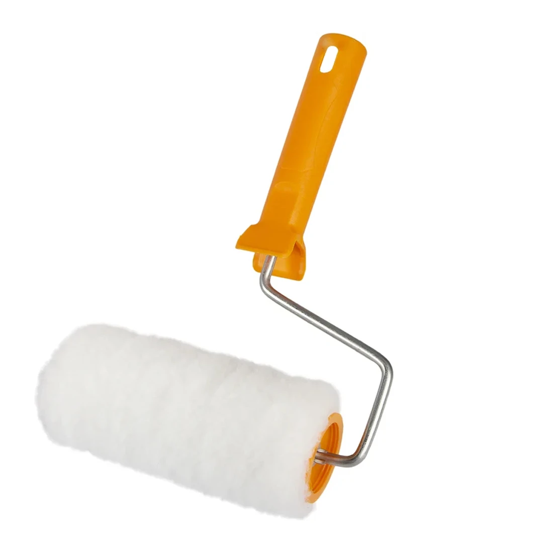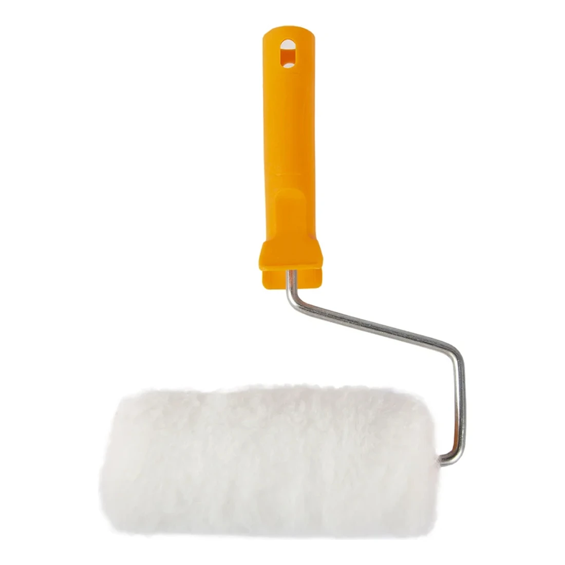 Шубка выполнена из искусственного меха с высотой ворса 15 мм. Такая структура хорошо удерживает краску и позволяет наносить её равномерным слоем даже на слегка шероховатые основания. Валик быстро впитывает лакокрасочный материал и отдаёт его при прокатывании без подтёков и разводов. Это делает его удобным для больших площадей, где важна скорость и аккуратность.