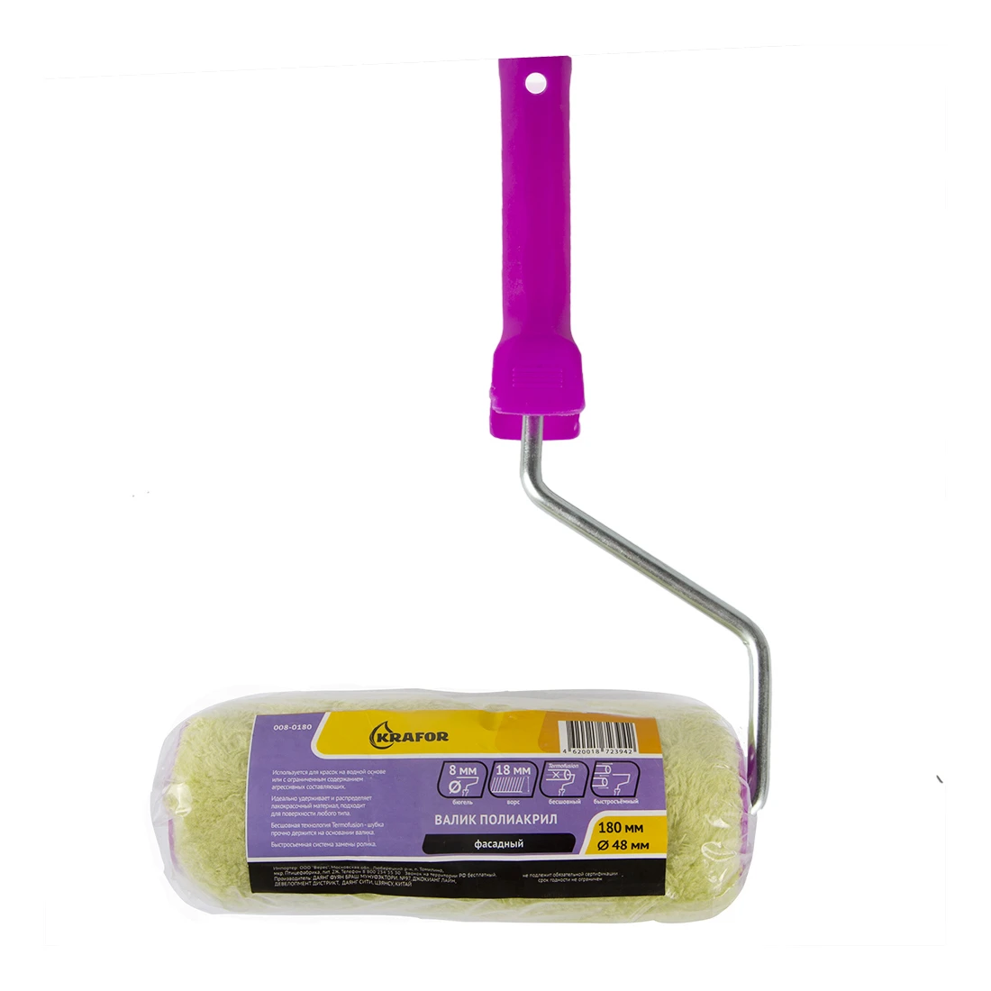 Если вам нужен надёжный инструмент для окраски фасадов и шероховатых поверхностей, фасадный валик Krafor D48/180 мм (ворс 18 мм, бюгель 8 мм) станет отличным выбором. Он поможет быстро и ровно нанести краску, обеспечив прочное и долговечное покрытие.