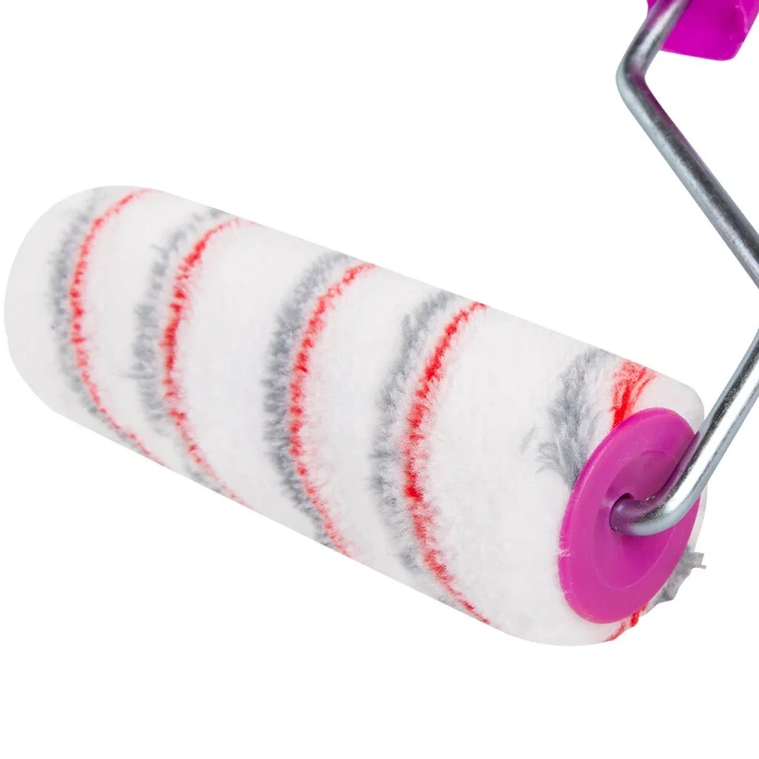 Шубка выполнена из полиакрила, материал прочный, износостойкий и рассчитанный на многократное использование. Ворс надёжно закреплён, не выпадает в процессе работы, сохраняя аккуратность финишного слоя. Валик можно применять с эмалями, масляными и водно-дисперсионными красками.