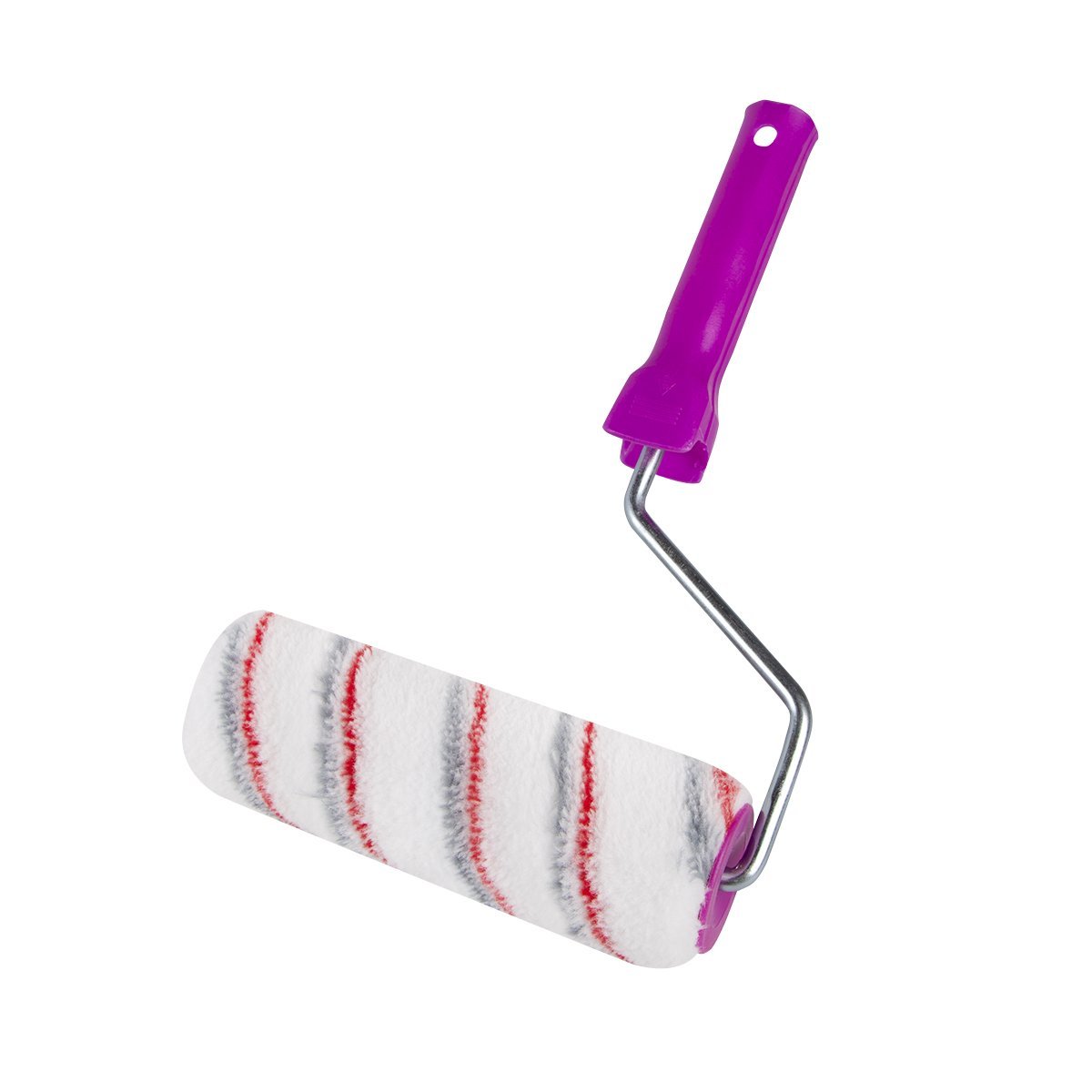 Инструмент поставляется в сборе: прочная пластиковая рукоятка длиной 165 мм удобно лежит в руке, а стальной стержень обеспечивает надёжность конструкции. Бюгель диаметром 8 мм позволяет уверенно фиксировать ролик и обеспечивает плавное вращение во время окрашивания. Вес около 0,25 кг делает валик лёгким и удобным, снижая нагрузку на руку.