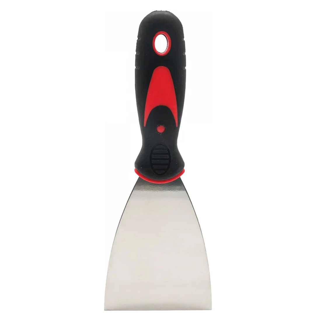 Шпатель предназначен не только для нанесения и выравнивания шпаклевок и других строительных растворов, но и для демонтажа старых покрытий. Прочное полотно из нержавейки позволяет поддевать отслаивающуюся краску, сбивать слабые участки старой шпаклевки, срезать наплывы и выступающие кромки. Таким шпателем для ремонта стен удобно очищать основание от дефектных мест перед новым выравниванием, особенно на небольших участках и вокруг сложных элементов, где широкие скребки работать уже не позволяют.
