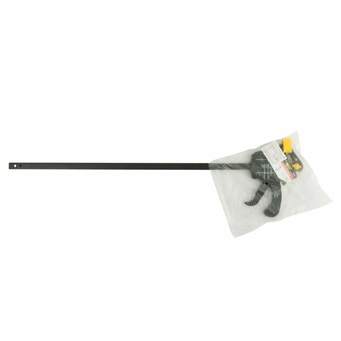 Ширина зажима 600 мм и глубина зажима 60 мм дают возможность работать с крупными панелями, рамами или сборочными конструкциями. Инструмент можно использовать также как распорку при перестановке губок — это удобно при склеивании или сборке угловых соединений.