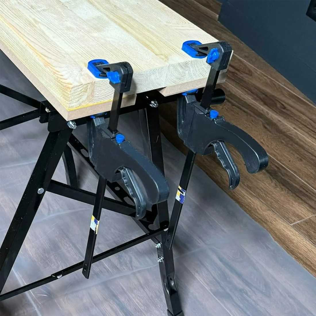 Рычаг снабжён удобной резиновой накладкой, предотвращающей скольжение руки, и обеспечивает уверенный захват во время работы. Быстрозажимная система позволяет моментально зафиксировать деталь или освободить её одним движением, экономя время и силы мастера. Механизм сжатия работает плавно и точно, гарантируя равномерное распределение давления по всей поверхности зажима.