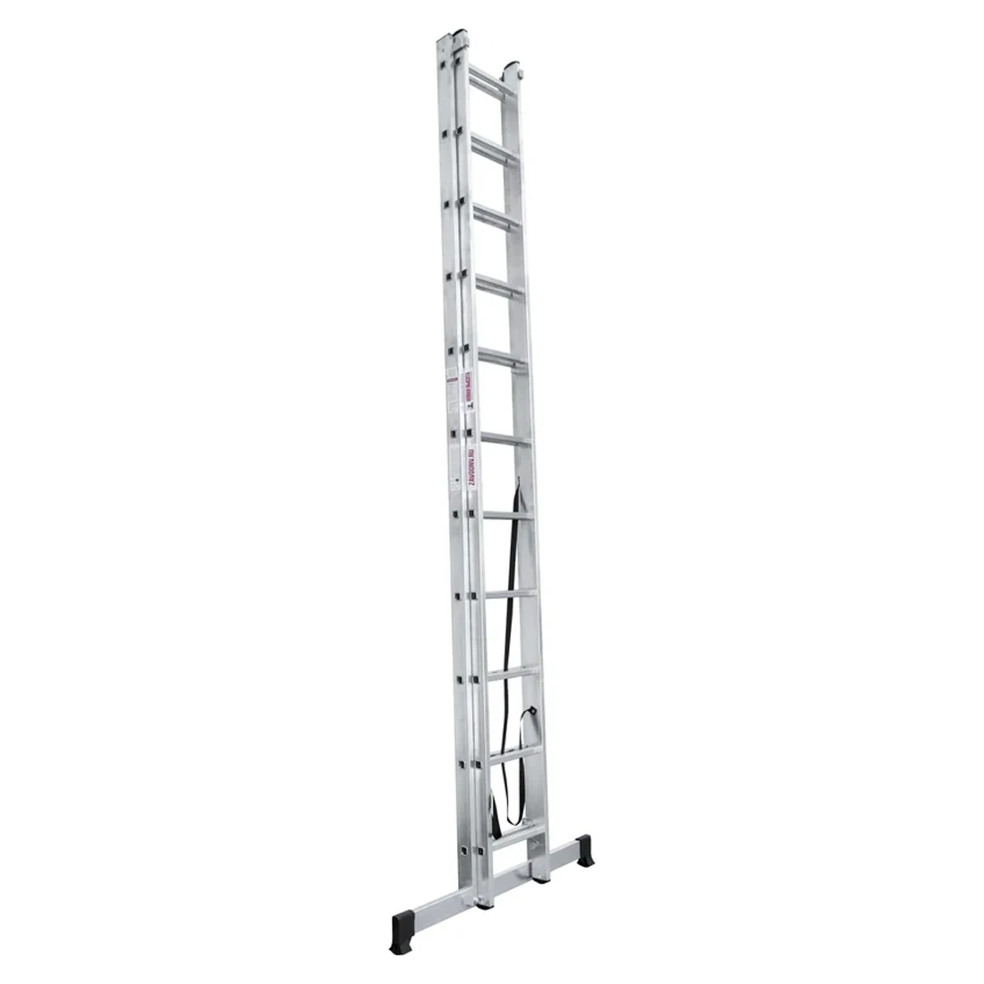Минимальная длина лестницы составляет 2,92 м, максимальная — 5,01 м, при этом рабочая высота достигает 6,14 м. Максимально допустимая нагрузка — до 150 кг, что позволяет безопасно работать с инструментом и материалами. Вес изделия составляет около 9,4 кг, поэтому лестницу удобно переносить, устанавливать и хранить.