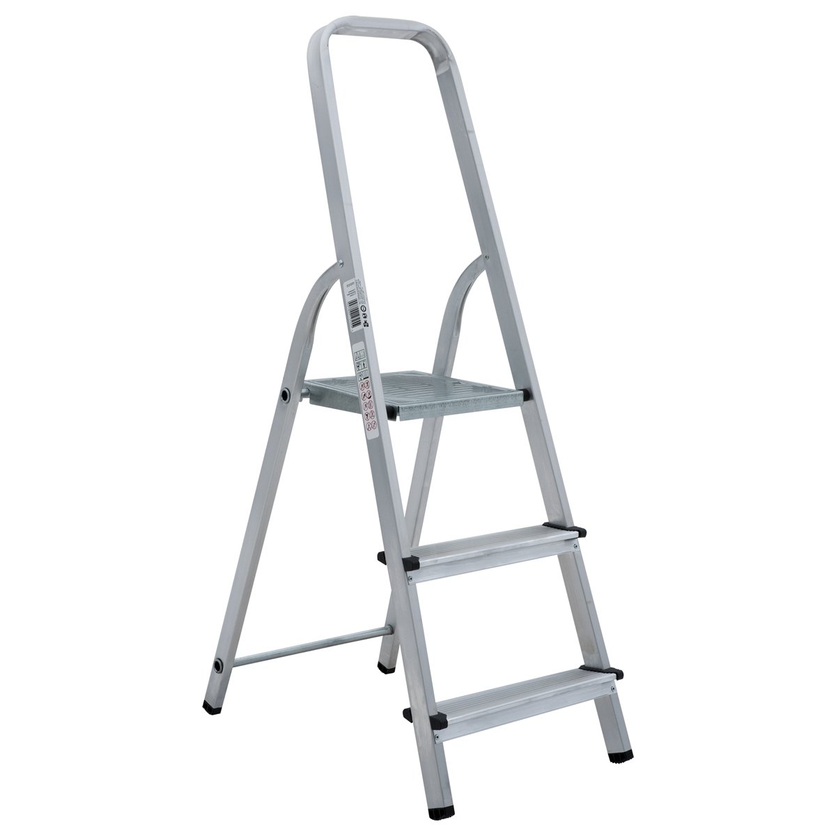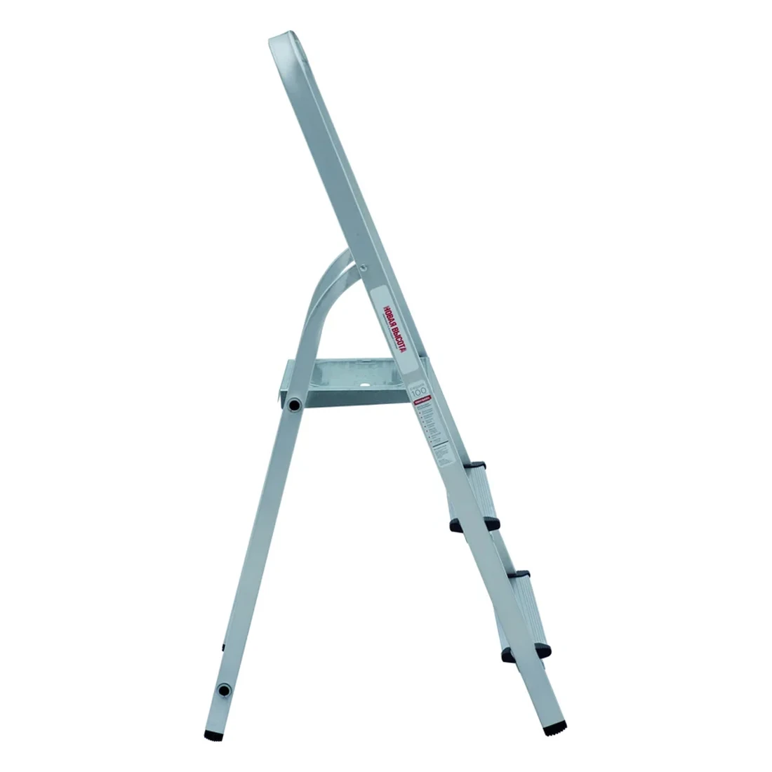 Стремянка изготовлена из прессованного алюминиевого профиля, что обеспечивает небольшой вес и достаточную прочность для регулярного использования. Надёжное соединение ступеней со стойками повышает жёсткость конструкции и положительно сказывается на сроке службы. Алюминий не подвержен коррозии, поэтому изделие подходит для эксплуатации в помещениях с разной влажностью.