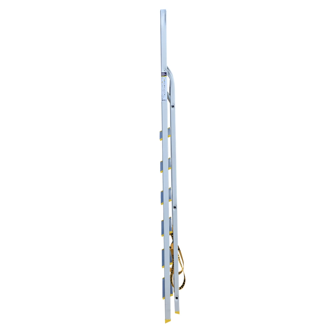 Тетива, площадка и ступени стремянки изготовлены из высокопрочного алюминиевого анодированного профиля. Задняя и передняя нога соединены между собой. Ступени и рабочая площадка имеют рифленую поверхность. Башмаки изготовлены из высокопрочного пластика. Стремянка в рабочем положении надежно фиксируется рабочей площадкой (опорная трубка, на которую ложиться площадка, должна полностью войти в пазы площадки), а с определенного размера дополнительно страховочными ремнями.