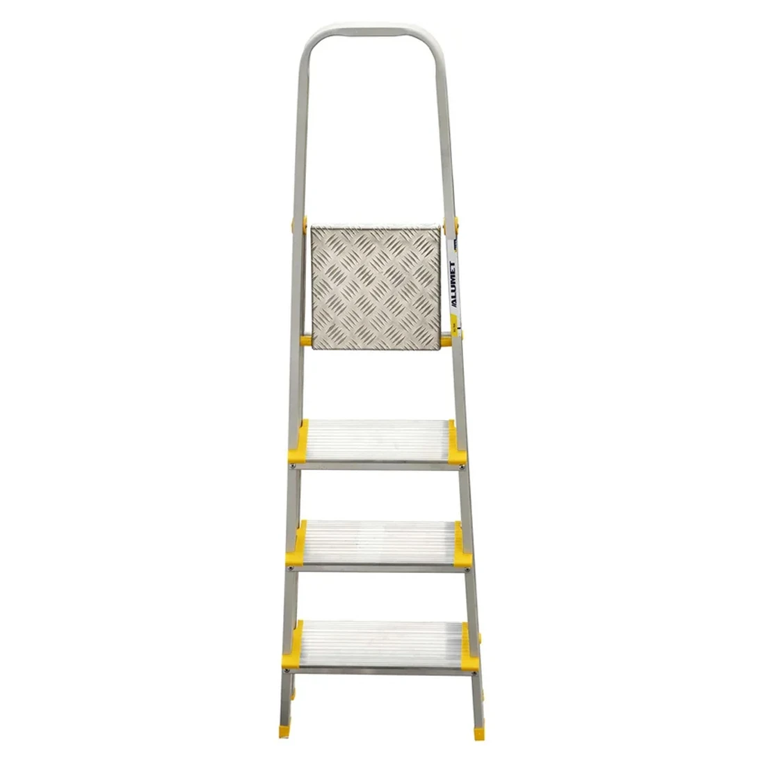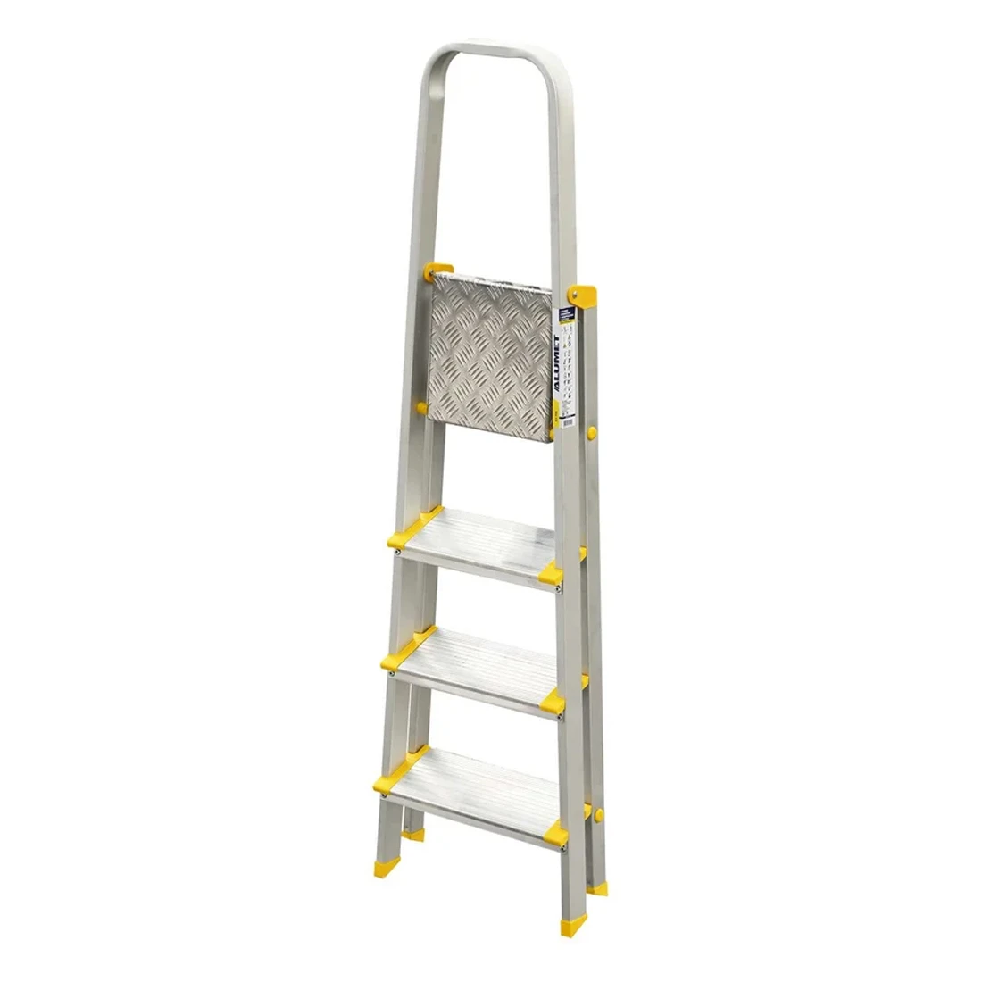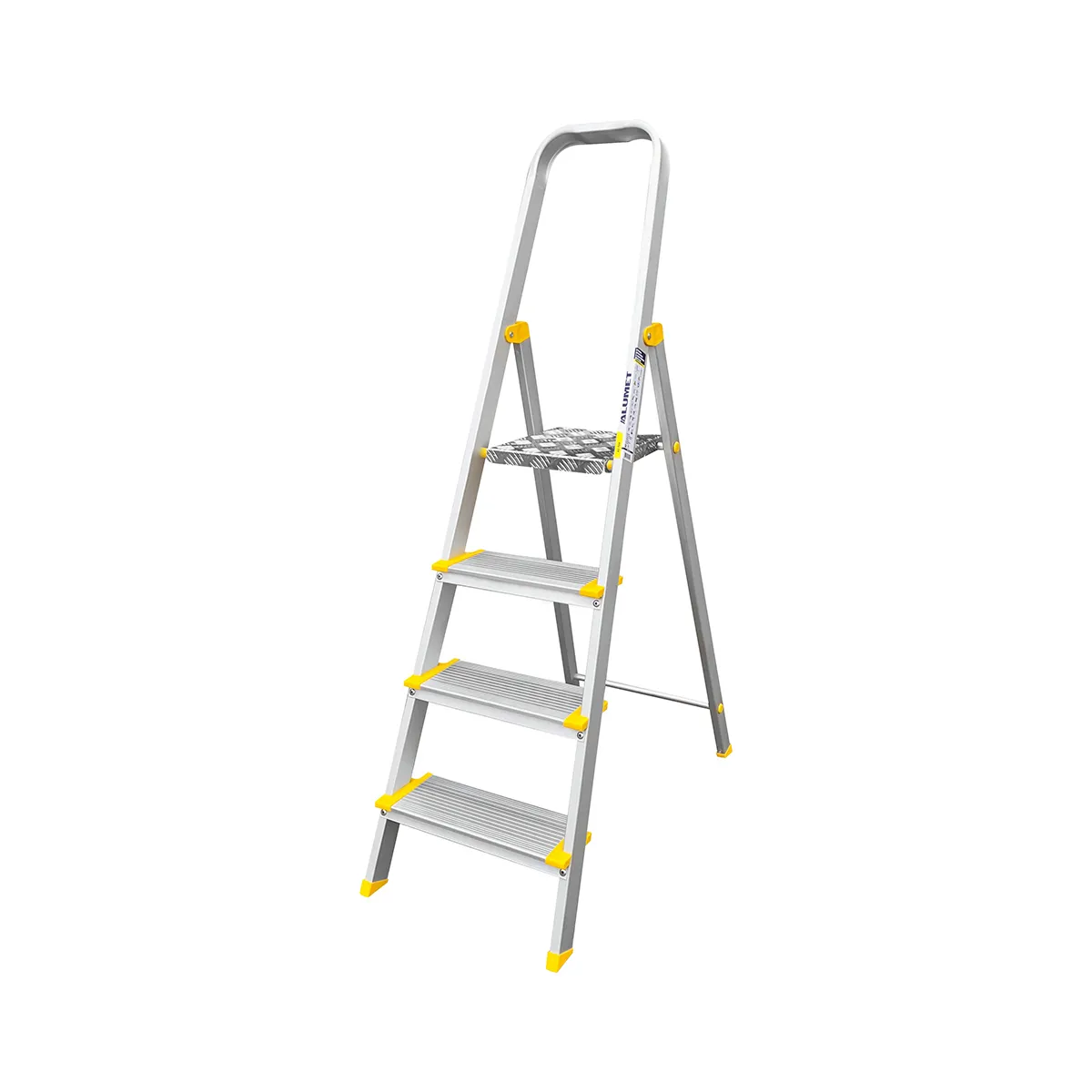 Тетива, площадка и ступени стремянки изготовлены из высокопрочного алюминиевого анодированного профиля. Задняя и передняя нога соединены между собой. Ступени и рабочая площадка имеют рифленую поверхность. Башмаки изготовлены из высокопрочного пластика. Стремянка в рабочем положении надежно фиксируется рабочей площадкой (опорная трубка, на