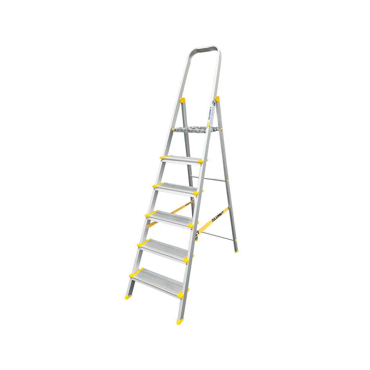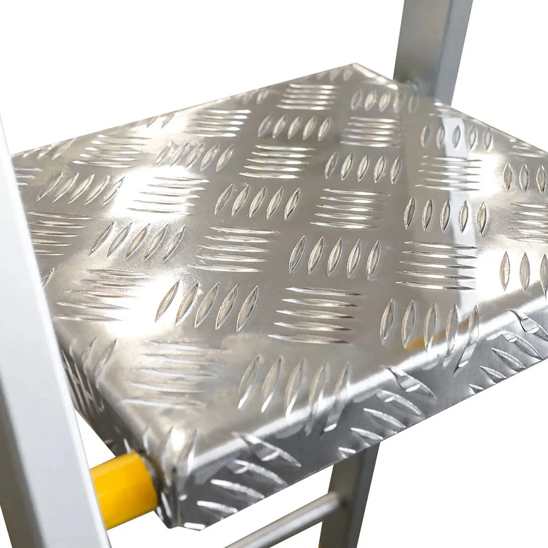 Тетива, площадка и ступени стремянки изготовлены из высокопрочного алюминиевого анодированного профиля. Задняя и передняя нога соединены между собой. Ступени и рабочая площадка имеют рифленую поверхность. Башмаки изготовлены из высокопрочного пластика. Стремянка в рабочем положении надежно фиксируется рабочей площадкой (опорная трубка, на