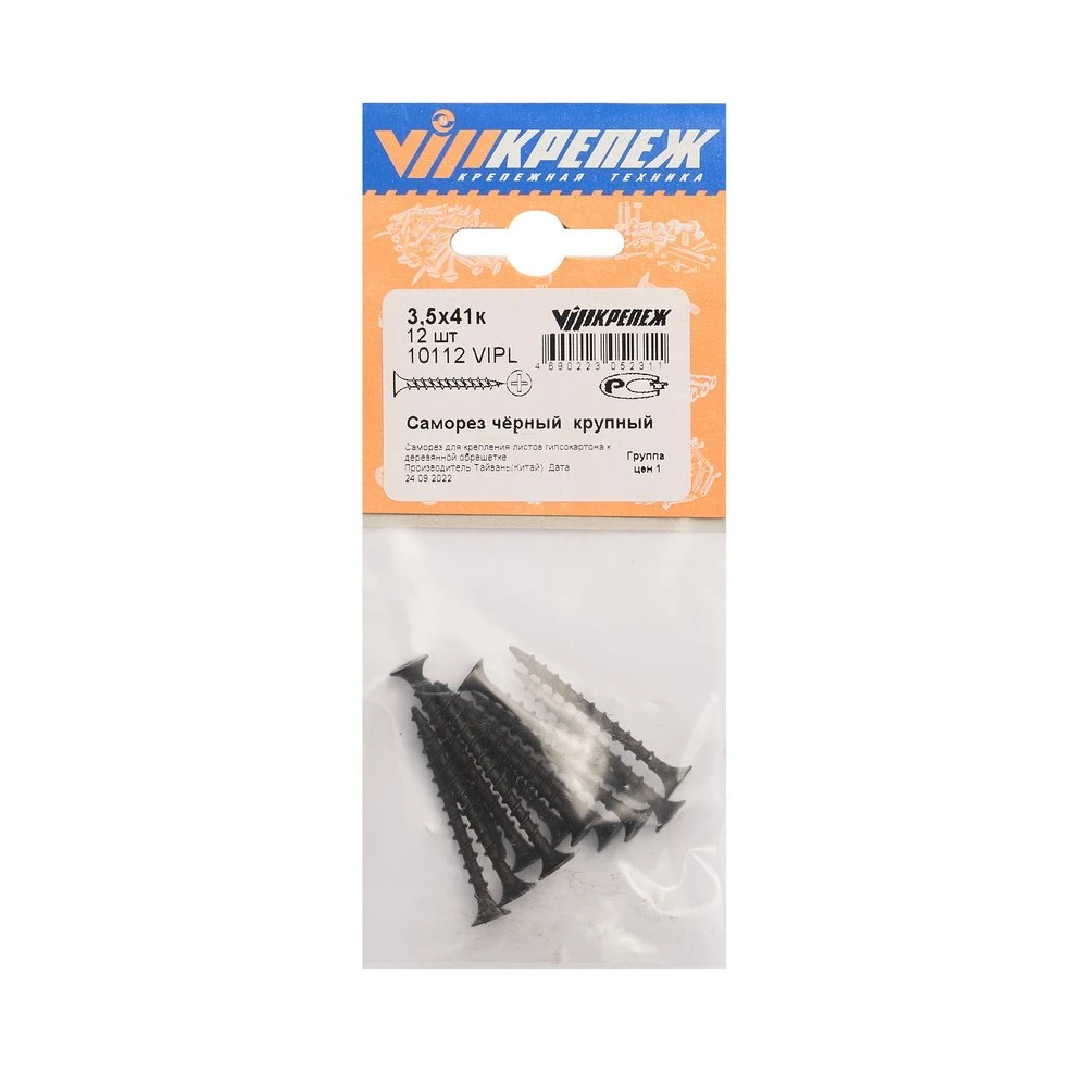 VIP Саморез черный 3,5х41 кр 12шт 10112