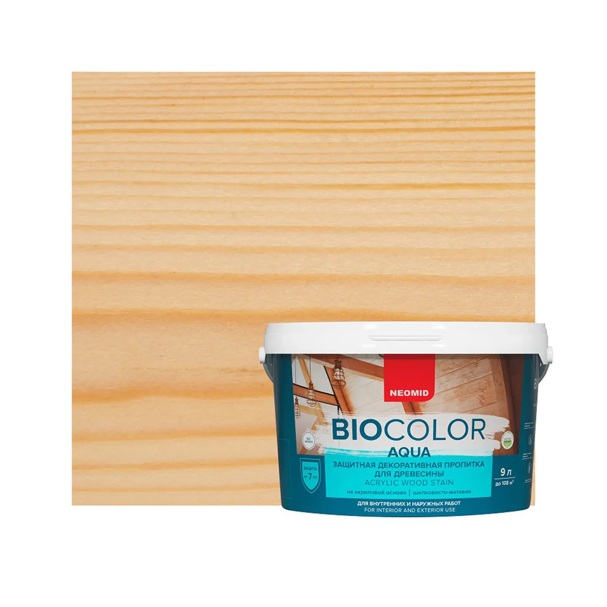 Пропитка защитная декоративная для древесины "BIO COLOR AQUA" 9 л бесцветная (1) "NEOMID"